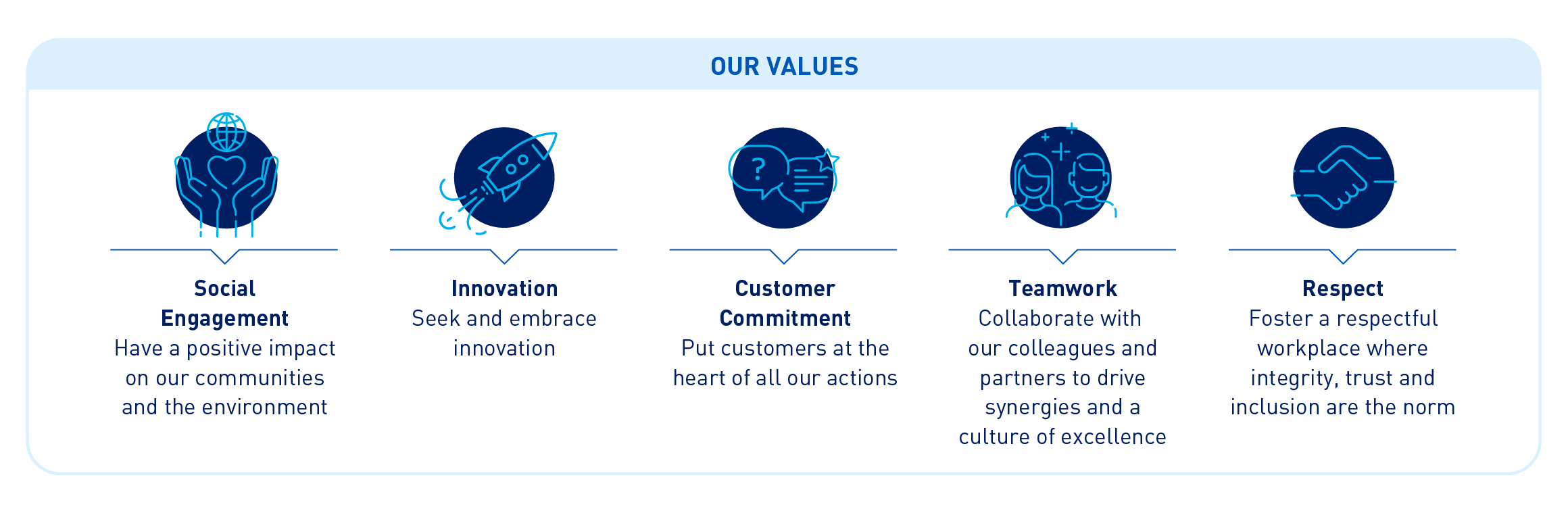 We exist to enrich people’s lives through human connection and vibrant communities. We are proud to be a powerful driver of economic and social development in our society and to contribute to fostering sustainable and inclusive growth.